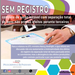 Sem registro, contrato de união estável com separação total de bens não produz efeitos perante terceiros
